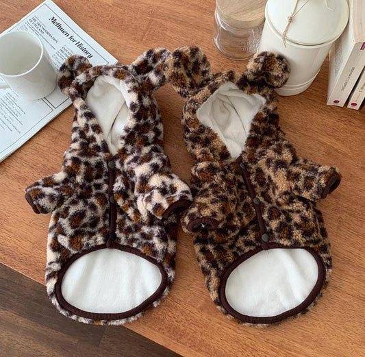 Fuzzy Leopard Bear Hoodie