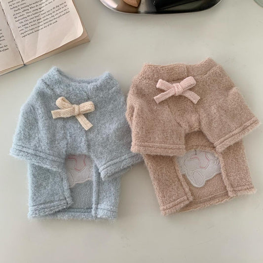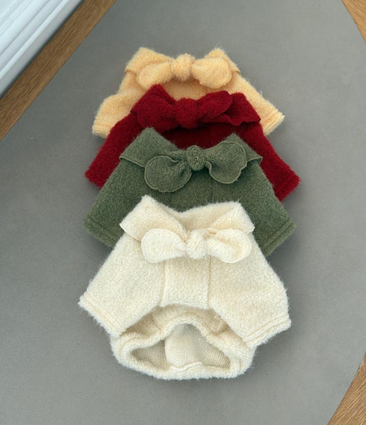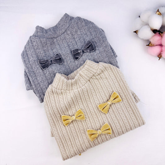 Velvet Bow Ribbed Knit Sweater