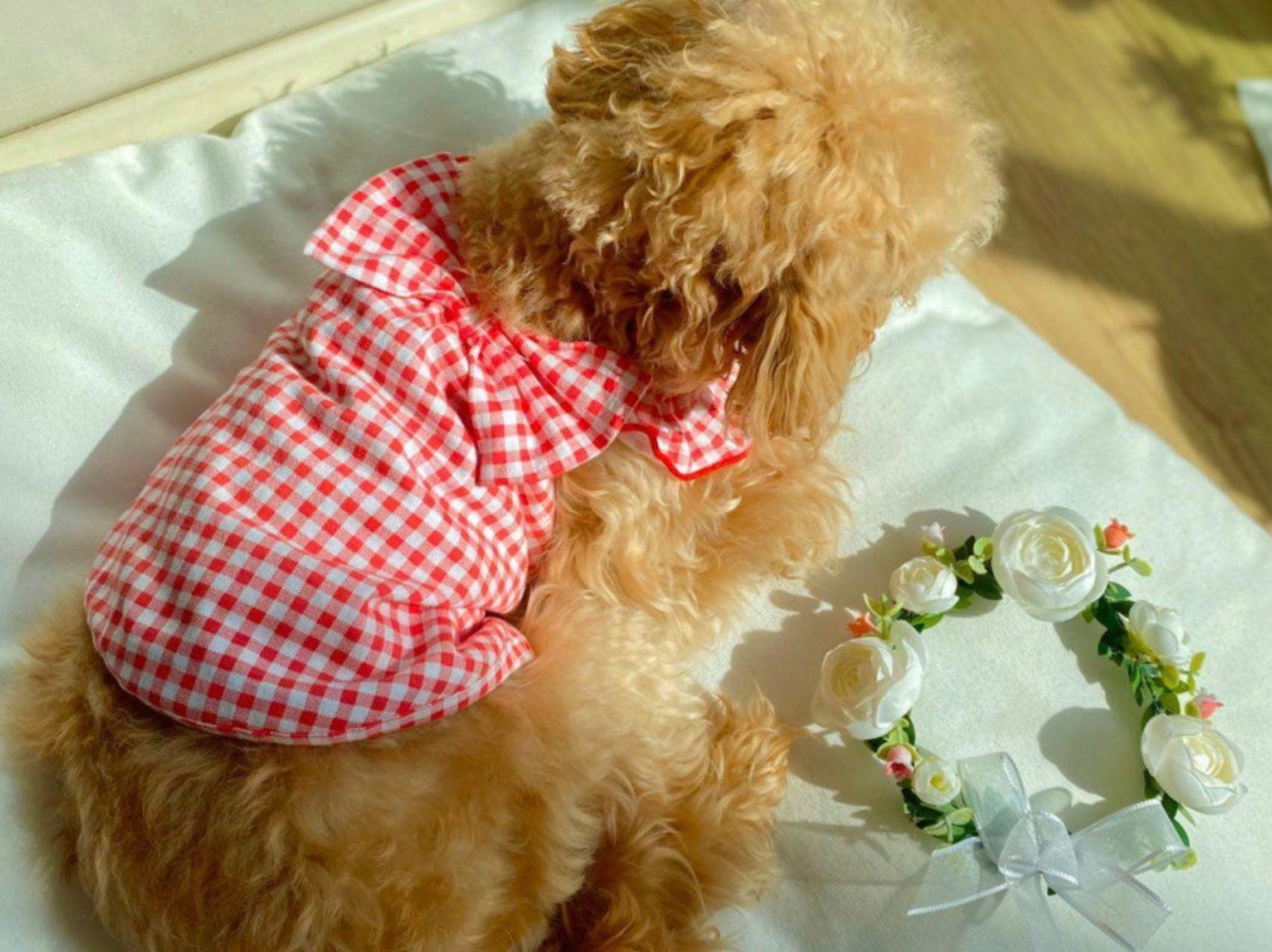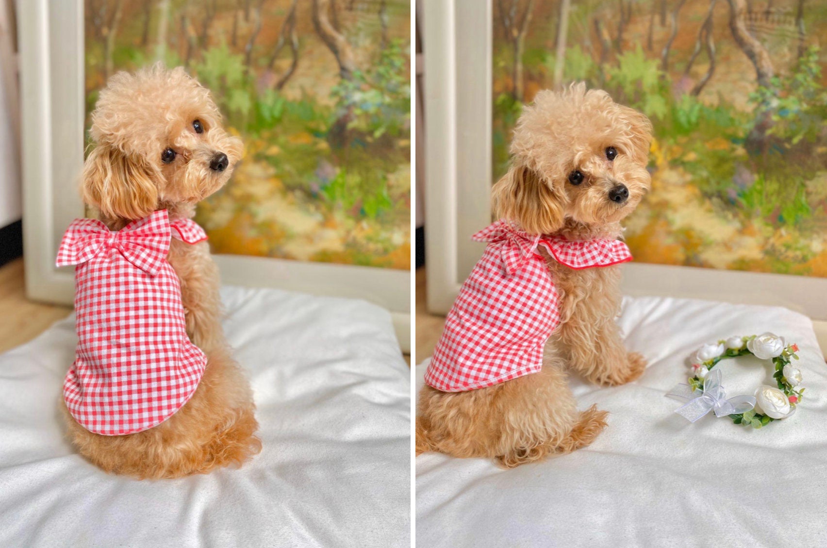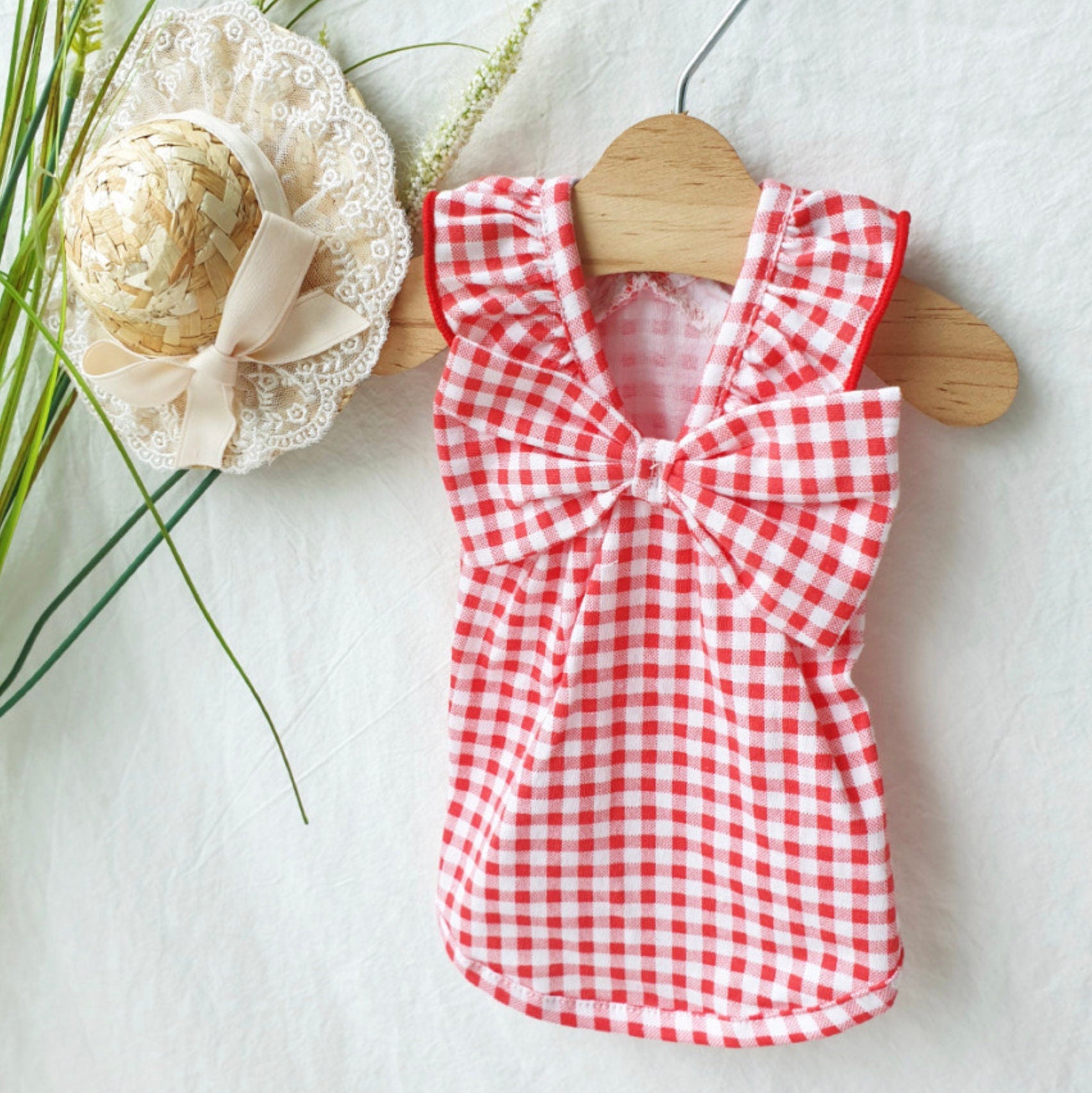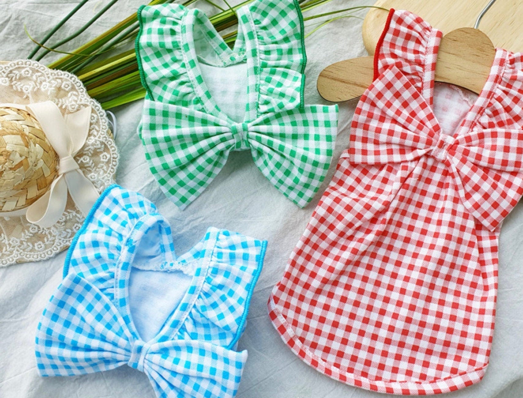 Elevate your pet's style with our Gingham Ribbon Dress, designed for both special occasions and everyday wear. This charming piece from NKpup encompasses a timeless gingham pattern, making it an instant classic in any wardrobe.