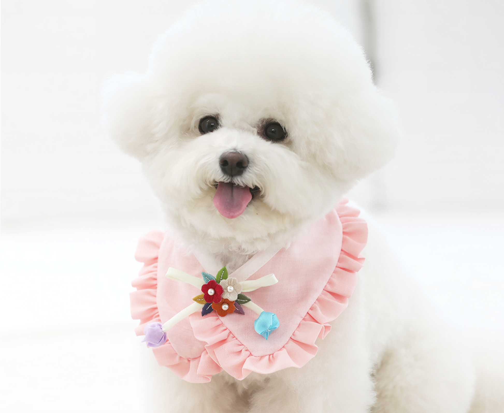 Dress your pup in bold Korean tradition. This Ruffle Pet Hanbok Cape channels classic hanbok style with soft pastels and delicate ruffles that make a statement. Lightweight and comfortable, it's the perfect way to celebrate cultural flair with serious attitude.