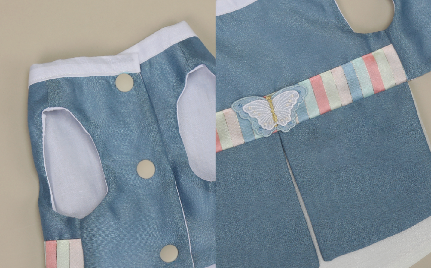 Inspired by classic Korean design, this Sky Blue Hanbok Dress blends soft elegance with traditional charm for your pet. Featuring gentle pastel tones, refined detailing, and a graceful silhouette, this piece brings cultural beauty to every special moment.